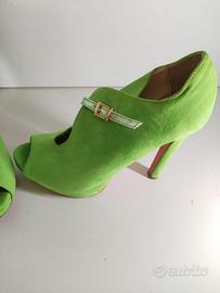 Se cerchi una scarpa che unisca stile, qualità italiana e un design davvero unico, queste décolleté verde smeraldo numero 38 sono esattamente ciò che fa per te. Sono NUOVE, mai indossate, curate nei dettagli e realizzate con materiali di ottima qualità tipici della produzione italiana. prezzo originale 59 euro Il loro design è un mix perfetto di eleganza e personalità: Tomaia scamosciata dal colore verde intenso, morbida e raffinata Punta peep-toe che slancia la silhouette Cinturino frontale metallizzato con fibbia dorata, luminoso e chic Taglio laterale aperto, moderno e femminile Tacco stabile e confortevole, ideale per camminare con sicurezza Colore vibrante, perfetto per chi ama distinguersi con stile Perfette per: Cerimonie, eventi e serate eleganti Look fashion e ricercati Dare un tocco di colore a outfit neutri Chi apprezza la qualità Made in Italy e vuole una scarpa che non passi inosservata Condizioni: ⭐ NUOVE, mai indossate ⭐ Nessun difetto, nessun segno ⭐ Conservate con cura Queste décolleté sono ideali per chi vuole un accessorio che parli da solo: eleganti, originali e con quella qualità italiana che fa la differenza. 🤝 Disponibile anche ritiro a mano in zona asti