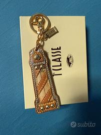 Portachiavi Charm Geo Natural in pelle di Vacchetta con stampa geo classic e inserti in metallo color oro