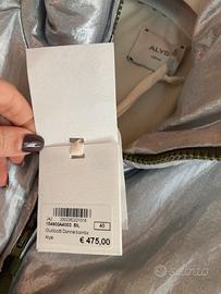 Splendido bomber, color metallizzato, tinta unita, morbidissimo, collo alto, imbottitura leggera, tasche, chiusura con zip a doppio cursore.