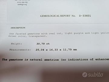 Conservata in busta sigillata con sigillo dell'istituto gemmologico spagnolo