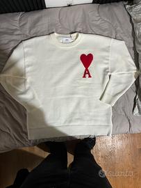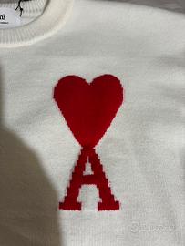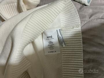 vendo pull di AMI paris nuovo ma usato materiale comodo e morbido vendo perche mi e stato fatto come regalo ma ha una taglia piu grande volore bianck logo rosso