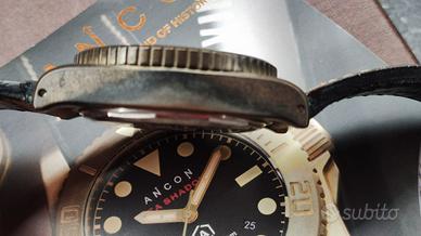 Orologio in bronzo, robusto con movimento automatico Miyota 8215, vetro zaffiro e un bel quadrante verdone. Diametro 45mm.. Nel tempo ha acquisito una patina che rende unico ogni orologio in bronzo. Completo di tutto il corredo che comprende: cinturino pelle originale, cinturino in cordura e cinturino in gomma (mai utilizzati) e spernatore. Pezzo fuori produzione. Prima serie di Sea Shadow. Dal vivo è semplicemente stupendo. Disponibile per qualsiasi domanda