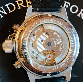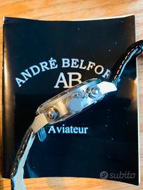 Bellissimo il raro orologio ANDRE' BELFORT MODELLO AVIATEUR con cassa in acciaio e quadrante blu elettrico, movimento a carica automatica calibro ETK 760 20 RUBINI. Completo di documenti originali, con certificato di autenticità e scatola. VERAMENTE UN BELL'OGGETTO DA POSSEDERE ED INDOSSARE.