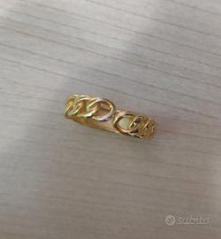 Coppia di anelli in argento 925 placcati in oro 18k. Un anello è regolabile, mentre dell'altro c'è la foto con la misura del diametro. Modello grumetta, fascette in maglia groumette, stile catena. Quello regolabile ha una placchetta/piastrina sulla quale si potrebbe anche scegliere di fare un'incisione.