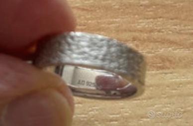 1 foto) Anello a fascia in argento 925 con zircone centrale.