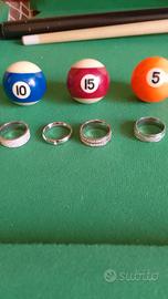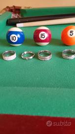 vendo 4 anelli con mini zirconi al sole emettono una brillantezza unica molto belli 2 anelli sono in acciaio inox e un anello è in materiale titanio migliore dell' acciaio mai indossati misura interna 19mm