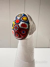 Anelli vintage, originali anni ’70–’90 in lega argentata, con pietra in vetro/resina colorata lavorata a mano.