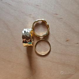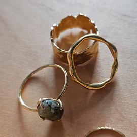 Set di 4 anelli. Metallo dorato e uno con pietra di Labradorite. Misura 14.