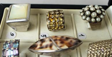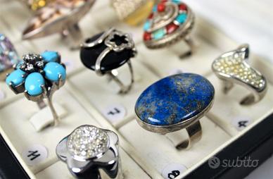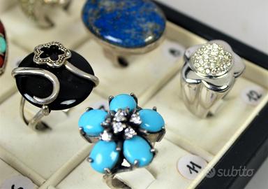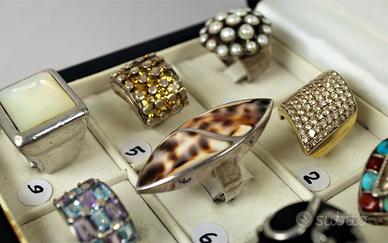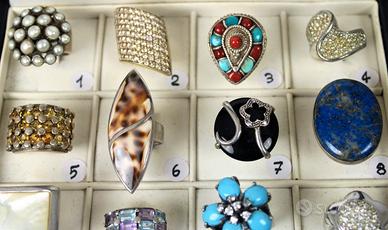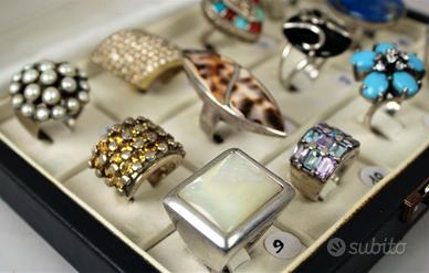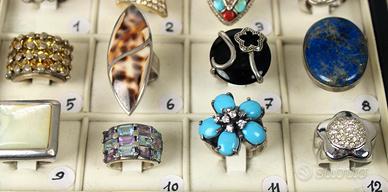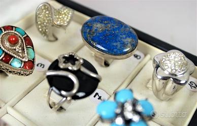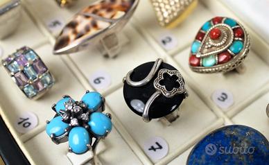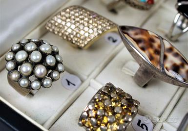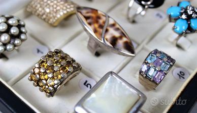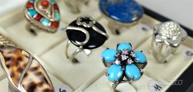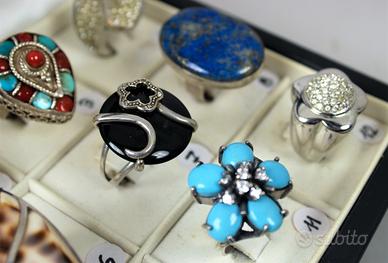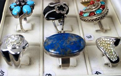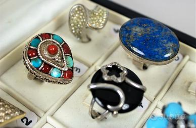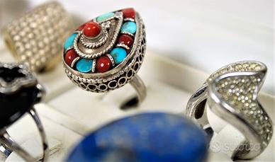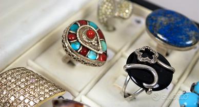 Serie di anelli vintage originali in argento con pietre varie e smalti.