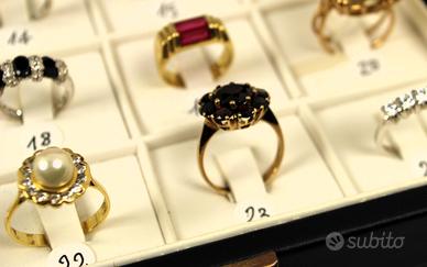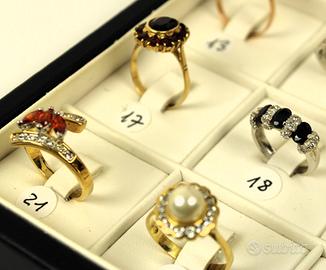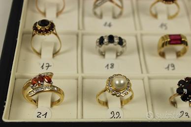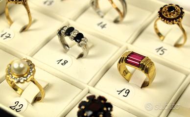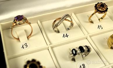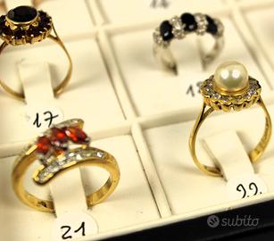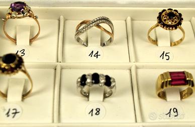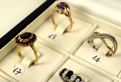 Serie di anelli vintage in oro 750 giallo e bianco, con pietre vere e originali.