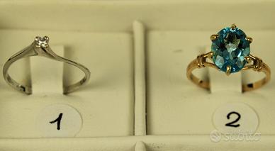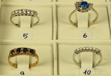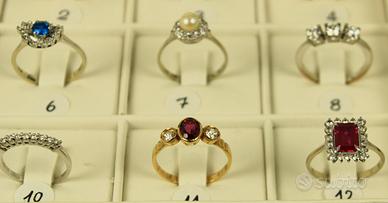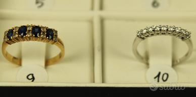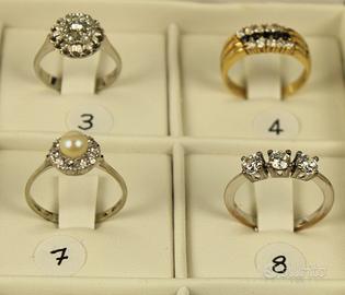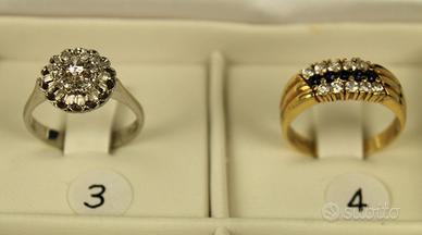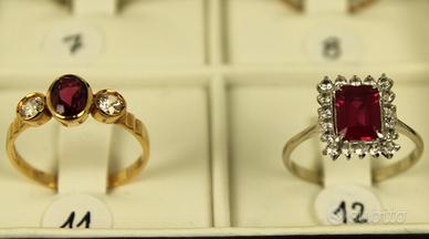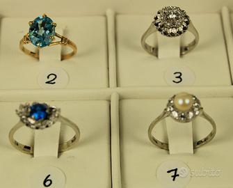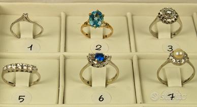 Serie di anelli vintage in oro 750 giallo e bianco, con pietre vere e originali.