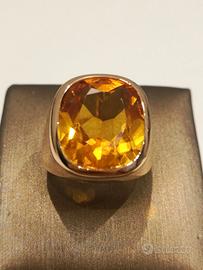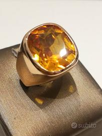 4) Anello chevalier in oro giallo 18 KT (750/1000), con quarzo citrino