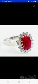 Anello oro 18 ct con rubino naturale e diamanti. Non è stato mai usato, con certificato di autenticità .