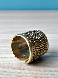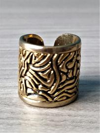 Anello a fascia Fascia aperta sul retro Fantasia astratta a bassorilievo Colore oro Diametro 18 mm Altezza 20 mm
