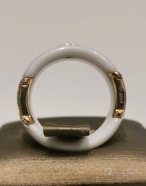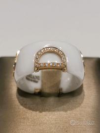 Anello a fascia Damiani D.Icon realizzato in ceramica bianca e oro rosa 18 carati (750/1000), con diamanti naturali taglio brillante di caratura totale di circa 0,19 carati, colore G/H.