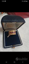 anello a fascia in oro 18kt con diamanti taglio brillante naturali 0,25 kt e rubini 1,30kt peso e misura in foto, nuovo