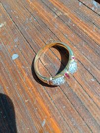 Anello a fascia in Oro Giallo con Diamanti e Rubin