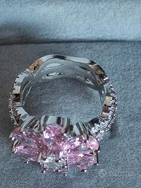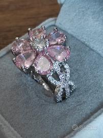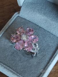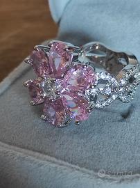 Anello a Fiore in Argento S925 con Zirconi Rosa