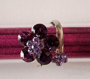 ANELLO A FORMA DI FIORE CRISTALLI VIOLA E LILLA