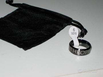 Vendo anello in acciaio inossidabile, nero lucido con scritta grigio chiaro "Misantrope".