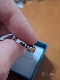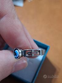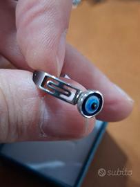 Anello in acciaio inossidabile taglia 18 con decorazione intagliato a greca laterale e centralmente evil eye