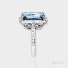 Anello Acquamarina 8,83 ct e Diamanti Certif. IGI