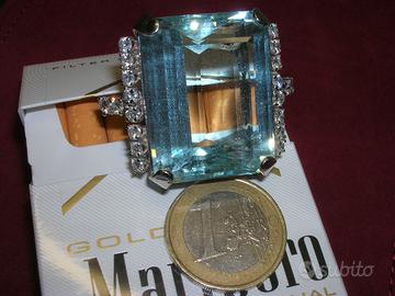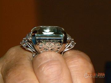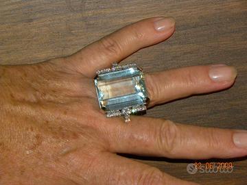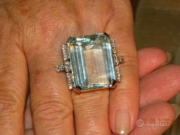 Salve vendo anello in oro bianco con incastonata importante acquamarina taglio ottagonale di ct 100 circa e diamanti naturali a contorno per un ct 1.20 circa. prezzo trattabile