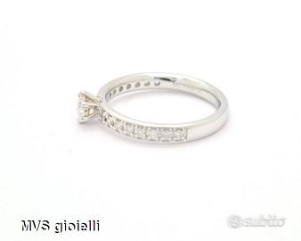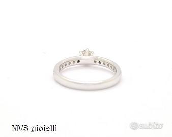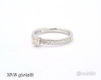 Bellissimo anello Glamira Alegra in oro bianco 18 carati (750/000), dal peso totale di 3,2 grammi e misura 12 (52 EU), impreziosito da diamanti taglio rotondo brillante per un totale di 0,25 carati, colore H e purezza VS, arricchiti da un elegante pavé sul gambo da ulteriori 0,24 carati. L'anello può essere messo tranquillamente a misura senza comprometterne l'estetica. Un gioiello moderno e raffinato, perfetto per celebrare un momento speciale con stile e luminosità.