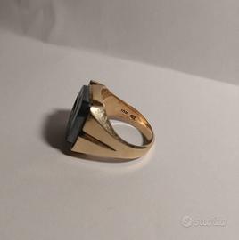 Anello Americano da Uomo in oro 18 carati proveniente da congedo forze armate. Pietra EMATITE con miliziani greco intagliato. Orientativamente anni 1960.
