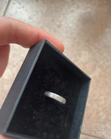 Anello Blue Spirit. Ha un’incisione di una data (vedere foto) che penso si possa togliere con un’altra incisione sopra cancellandola senza problemi! Argento 925. Ha dei brillantini in tutta la circonferenza esteriore, come si può ben notare 😊 (nelle ultime si vede la taglia)