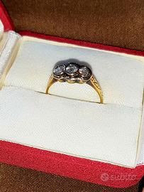 Antico anello in oro 9 carati e 3 brillanti inciso a mano