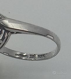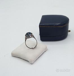 Anello Vintage, epoca 1940/50, imitazione topazio Blu con montatura liberty in argento 835, condizioni perfette, da collezione antiquaria, mai indossato, misure come da foto. Prezzo Non Trattabile.