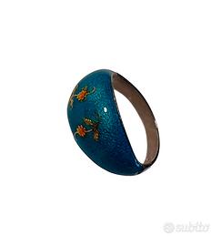 Bellissimo anello vintage anni '50 in argento 925 con montatura a cuscinetto di pietra naturale (turchese), con in cima finissima decorazione floreale.