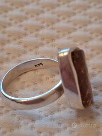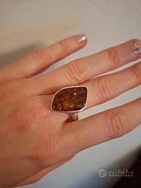 Anello Argento 925 con Ambra Baltica a forma irregolare misura diametro circa 2cm marchio 925 all'interno