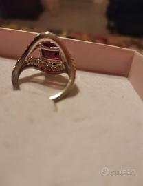 Anello Argento 925 creato a mano nuovo mai usato con Zircone fuscia centrale misura 14