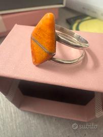Bellísimo anello con pietra coralina in argento 925. Buone condizioni.