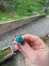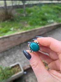 Anello in argento indiano lavorazione artigianale con incastonata una pietra di malachite