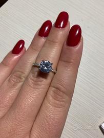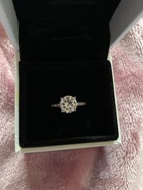 Vendo anello nuovo in argento con zircone grande centrale e tempestato di piccoli zirconi lungo tutto l'anello. Taglia 54. Preciso mai usato.