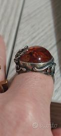 anello argento e ambra