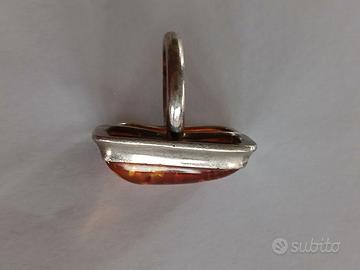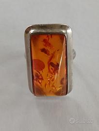 Anello in argento 925 con Ambra. Mis. interna anello 1,17 cm. Peso 10 g