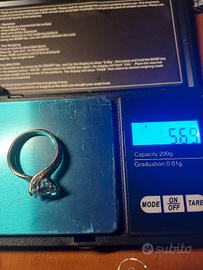 anello jn argento 925 con punzone ed un zircone brillante da 4 carati coperto di scatola e sacchetto