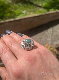 Anello in argento indiano manifattura artigianale con incastonata una pietra di radice di smeraldo