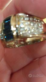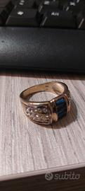 anello vintage in argento 925 gold, pietra acquamarina centrale e piccoli zirconi, un gioiellino