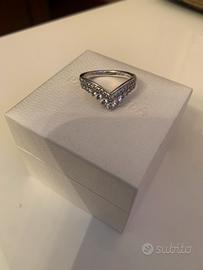 Anello mod princess argento con zirconi misura pandora 50 diametro 16 mm. Spedizione assicurata.