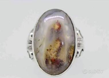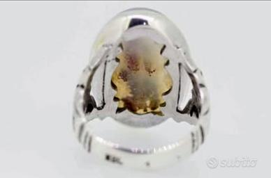 Anello unisex in argento con calcedonio. La misura è 22 e il peso è di 13,57 grammi. Le misure della pietra sono 26,6 x 16,6 x 6,1 mm.