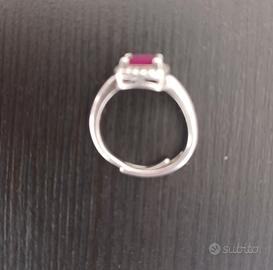 Vendo anello in argento rodiato con rubino sintetico taglio cuscino antico e zirconi.