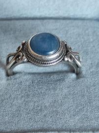 Splendido anello in argento S925 arricchito da una pietra naturale centrale dal fascino unico. La pietra, di un bellissimo colore azzurro polvere con venature naturali, è incastonata in una montatura riccamente lavorata con motivi a cordoncino e dettagli a voluta sui lati, che richiamano uno stile etnico e bohémien. Il gioiello è nuovo, mai indossato, con punzonatura interna S925 ben leggibile. Grazie al suo diametro interno di 18,1 mm, risulta comodo e di grande presenza sulla mano. 🎁 Extra: Scatolina Compresa nel prezzo, da scegliere al momento del pagamento. 📦 Spedizione rapida e imballo accurato. 💬 Disponibile per info o foto aggiuntive. #anello #argento925 #pietranaturale #azzurro #bohostyle #silverjewelry #anelloetnico #nuovo #vinteditalia #idearegalo #accessori