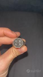 Anello a scudo con i quattro mori in argento brunito.