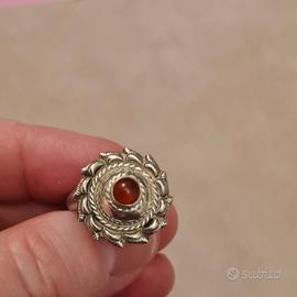 Anello argento etnico vintage con pietra corniola.