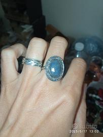 anello vintage argento e zaffiro misura regolabile.